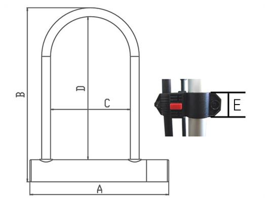 | 本体サイズ | シャックル直径:12mm Outside A:180mm B:320mm Inside C:108mm D:270mm ブラケット部分E:36mm Weight:980g |